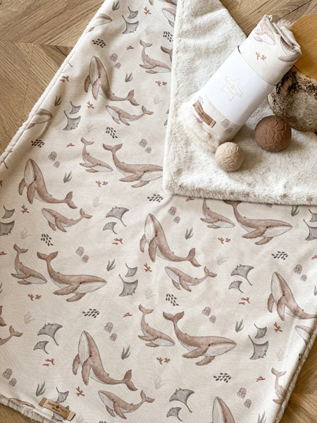 Cream dreamy whale design backed with a cuddly soft Beige fur.