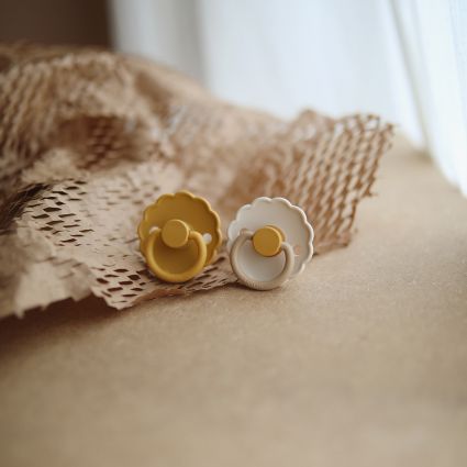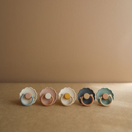FRIGG Daisy Dummies a gorgeous retro design, little ones love the silicone bulb shaped teat and you’ll love the wide range of colours.