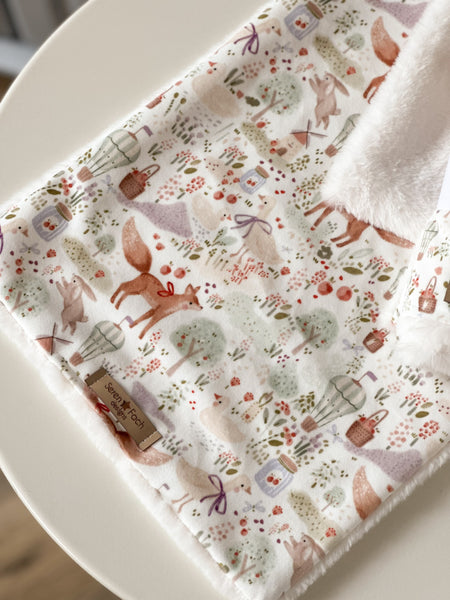 A gorgeous woodland design, soft velvet patterned front on the one side backed with a creamy soft ivory fur.
