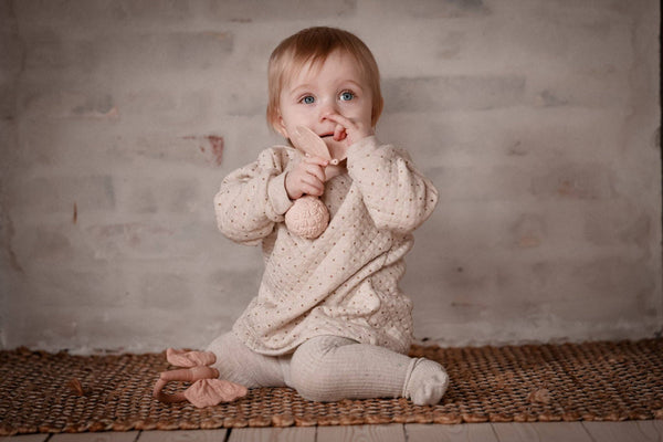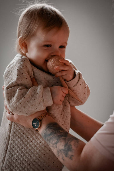 Rattle butterfly with a textured flower pattern on the bottom, and stem.