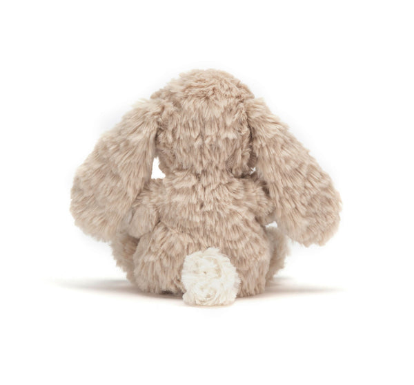 Yummy Bunny is a teeny-tiny treat for little paws! Podgy-sweet in soft beige fur, with a neat pink nose and snowy snoot, this lopsy poppet has cream under-ears and a wee fluffy bobtail. Hop along together, take a post-lettuce snooze or hop away on a little adventure!